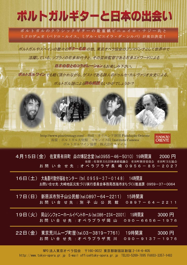 その後彼らは愛媛、長野、東京と公演し、無事にポルトガルに帰ったとのこと。公演は無料の所もあったり、有料でも収益金を震災の義捐金にしたりと、色々頑張れたみたいです。